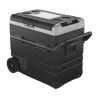 Эта двухкамерная модель в пластиковом корпусе, имеет колеса для удобства перемещения и выдвижную ручку. Дополнительно защищена угловыми противоударными накладками, которые предохраняют корпус от повреждений. В камерах можно раздельно задавать температуру, а открывание крышки изменять по одной из широких сторон. Это настоящий премиум класс с доступной стоимостью.