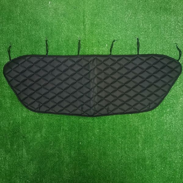 Установка зимней защиты решетки радиатора происходит путем привязывания нижних шнуров к решетке и закрепления верхних петель крючками под капотом . Крепление зависит от конструктивности и особенностей решетки автомобиля.