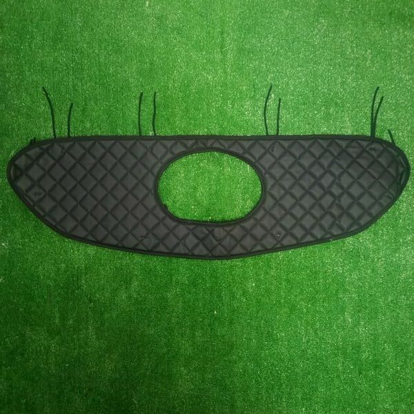 Установка зимней защиты решетки радиатора происходит путем привязывания нижних шнуров к решетке и закрепления верхних петель крючками под капотом . Крепление зависит от конструктивности и особенностей решетки автомобиля.